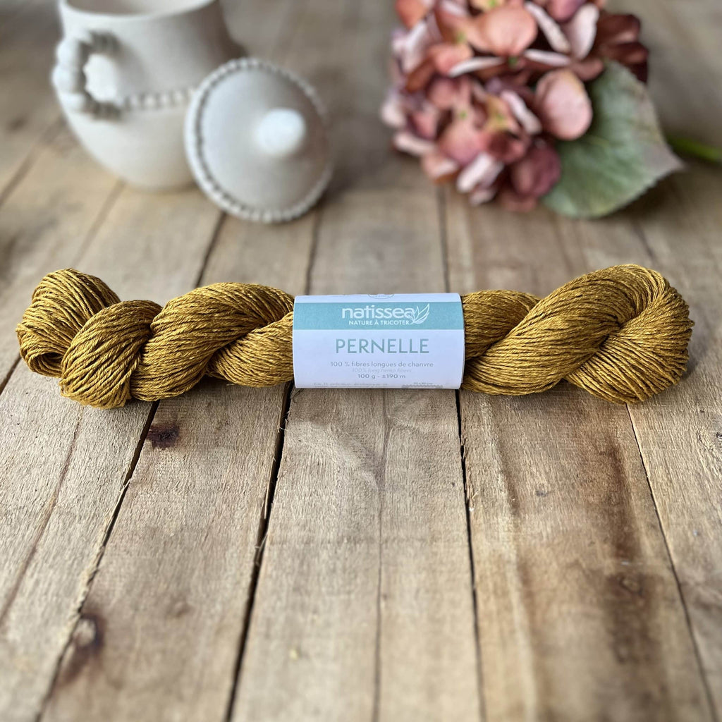Pernelle est un fil à tricoter en pur chanvre de qualité biologique récolté et filé écologiquement en Roumanie, garanti sans OGM et non traité chimiquement. C’est en France et en circuit court que le fil est « préparé » et teint avec des produits et colorants rigoureusement sélectionnés (enregistrés GOTS, certifiés Oeko-Tex® et garantis vegan).