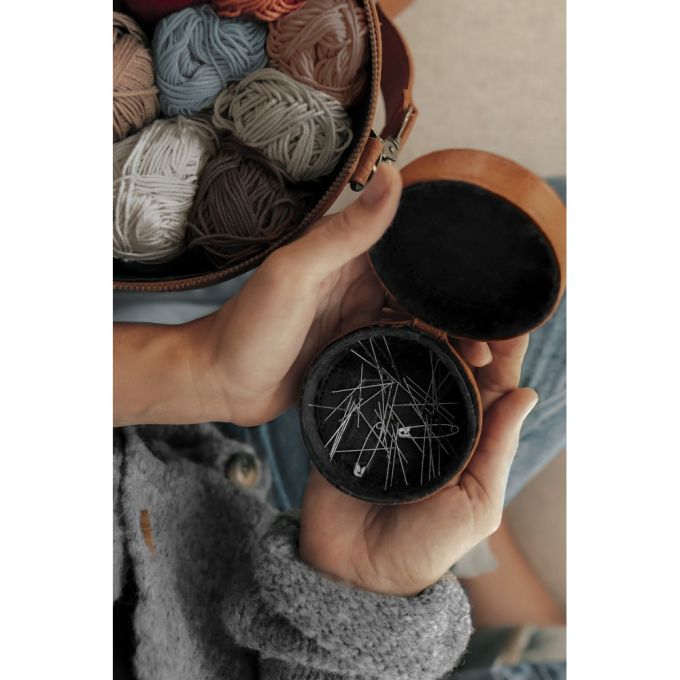 Découvrez la Boite magnétique pour aiguilles et épingles Muud Emeli - Whisky, l’accessoire indispensable pour tous les passionnés de couture, de tricot et de broderie !Conçue spécialement pour offrir un rangement élégant et sécurisé à vos aiguilles et épingles, cette boite magnétique Muud Emeli séduit par sa finition haut de gamme et sa grande praticité. Fabriquée avec soin, elle associe un extérieur en cuir de qualité supérieure à un intérieur en polydrill résistant, garantissant une protection optimale pour vos accessoires de couture tout en apportant une touche raffinée à votre espace de travail.Sa couleur Whisky, chaleureuse et tendance, s’accorde parfaitement à tous les univers créatifs, que vous soyez amateur ou professionnel. Grâce à son diamètre de 8 cm et sa hauteur de 4 cm, cette boite compacte se glisse facilement dans un sac à ouvrage, une trousse ou un tiroir, vous permettant de garder vos aiguilles et épingles toujours à portée de main, tout en évitant de les égarer.