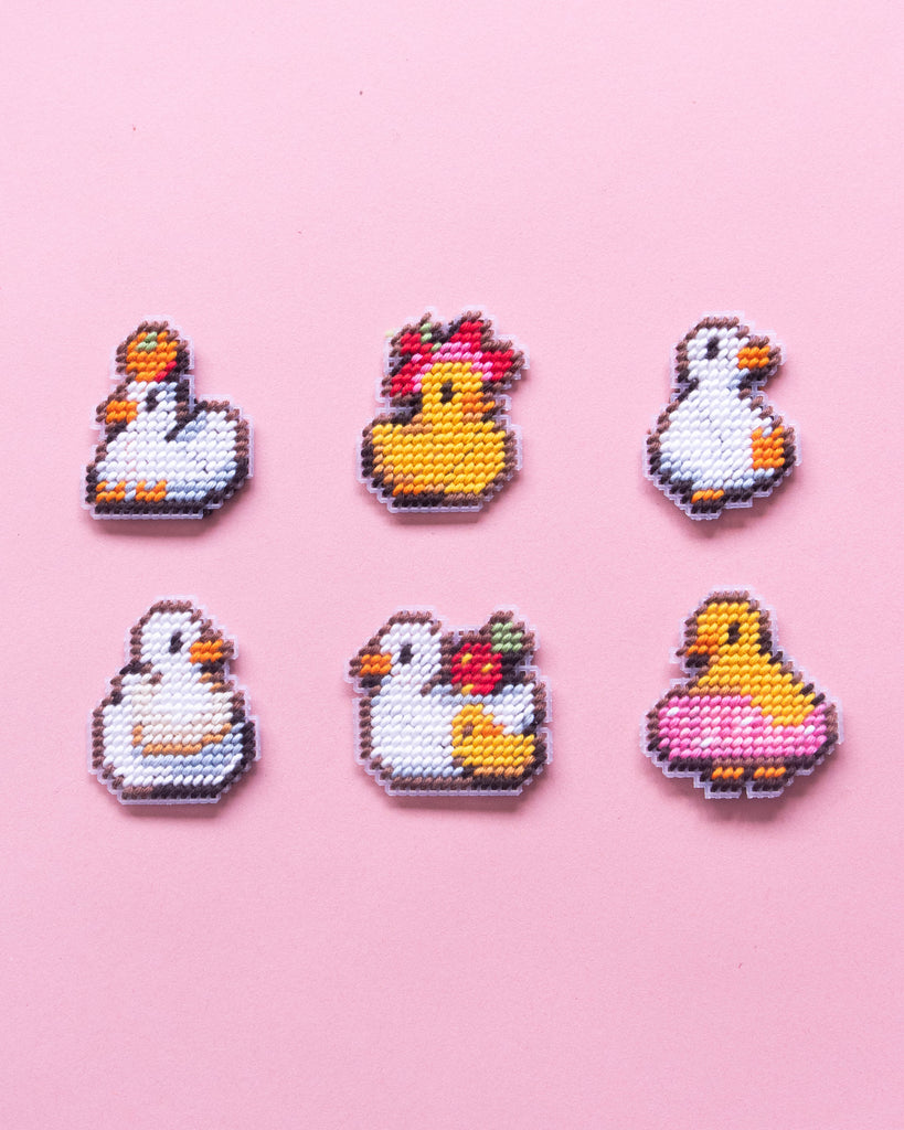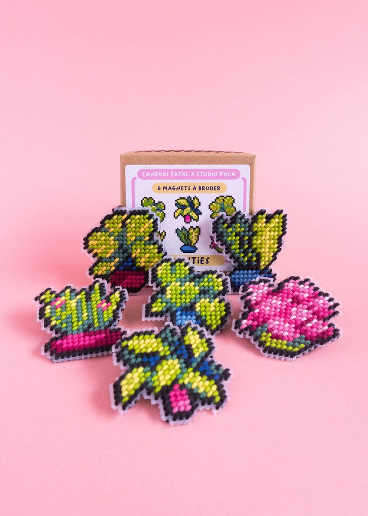 6 magnets à broder format env. 5×5cm Difficulté : 3/5 - medium